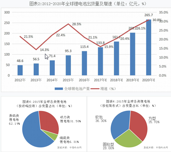 隨著數碼類電子產品和新能源動力類產品的得到廣泛應用和普及,鋰離子電池產業取得了快速發展,已經形成專業化程度高、分工明確的產業鏈體系,經過十多年的發展,全球鋰離子電池市場快速發展壯大。