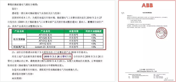 5月19日,ABB發布了價格調整通知,具體內容如下: