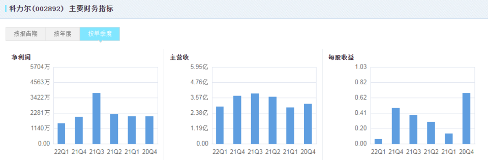 | 002892 | 科力爾 | 2.95 | 2.87 | 2.68% | 0.16 | 0.21 | -24.29% |