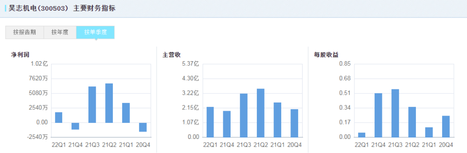 | 300503 | 昊志 | 2.29 | 2.61 | -12.32% | 0.19 | 0.35 | -44.57% |