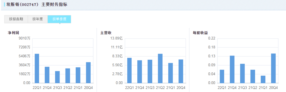 | 002747 | 埃斯頓 | 8.05 | 6.36 | 26.58% | 0.60 | 0.33 | 83.79% |